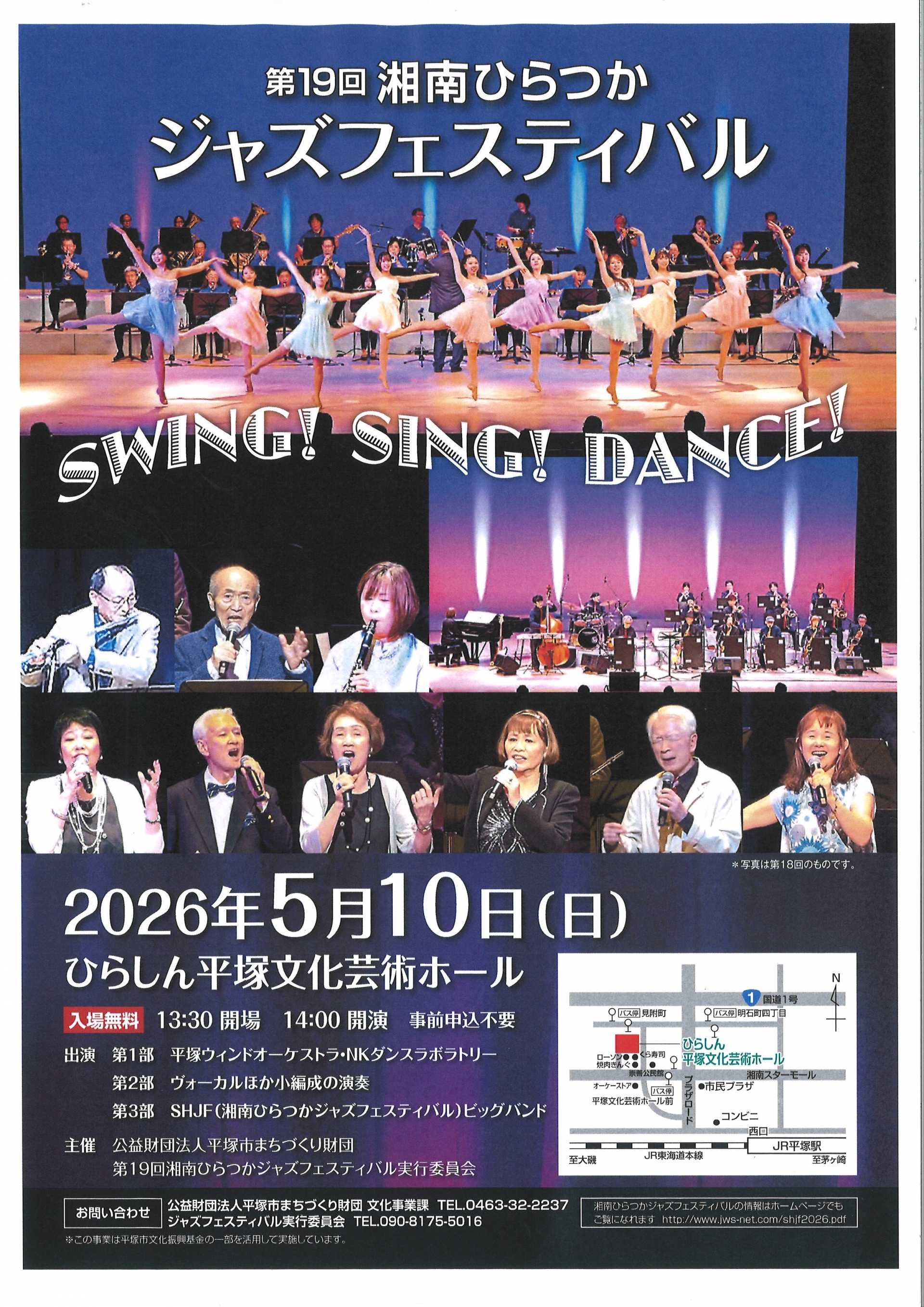 | 出 演 | 第1部 平塚ウィンドオーケストラ・NKダンスラボラトリー 第2部 ヴォーカルほか小編成の演奏 第3部 SHJF(湘南ひらつかジャズフェスティバル)ビッグバンド |